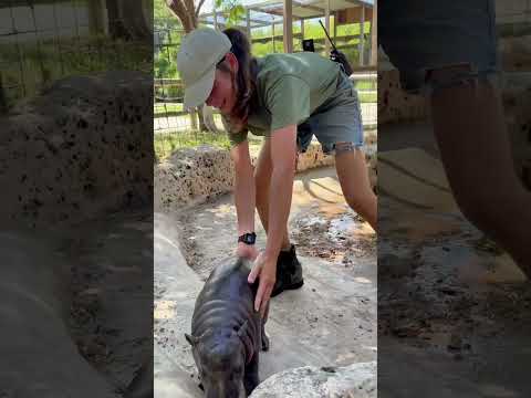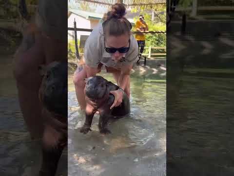 How to get a baby hippo out of the pool. #babyhippo #hippobaby #marsthehippo