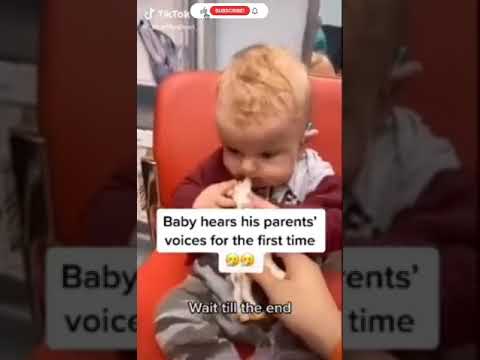 Baby hears for the first time! Reaction is pretty Scared..