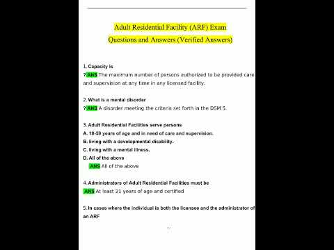 2024 Adult Residential Facility ARF Exam Questions and Answers Verified Answers1403 video