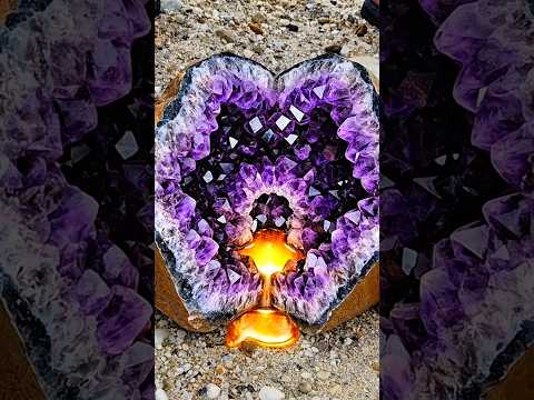 Hidden Fire Inside a Heart Amethyst 💜🔥 Crystal Reveal