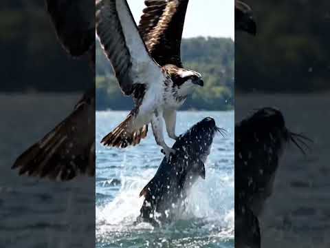 Crazy Osprey catches huge catfish and almost gets dragged under. #bird #osprey HappyI'm not a fish!