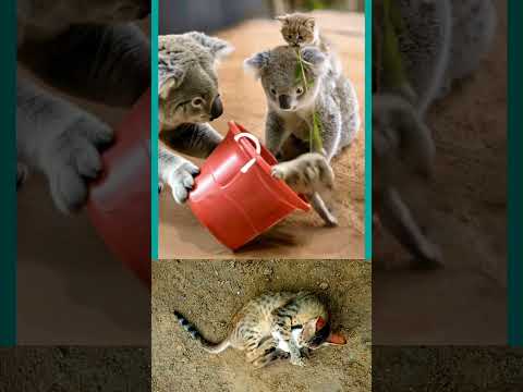 Zoo Animals Playing Together | Cute Koalas and Real Cat Having Fun! 🐨🐱