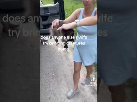 Woman finds baby Raccoon and wants to take it home. Husband says, "No!" #funny #funnyvideo