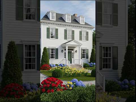 Beautiful Country-Style White House with Colorful Garden