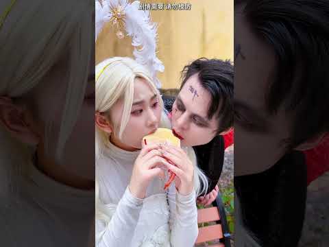 The clown shares a loaf of bread with an angel #clown #couple #shorts