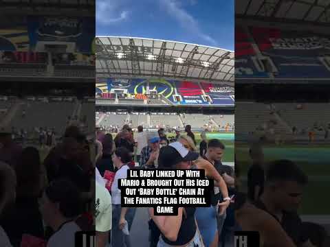 Lil Baby Linked Up With Mario, Iced Out ‘Baby Bottle’ Chain At The Fanatics Flag Football Game