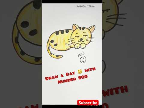 How to draw a cat 🐱 using 500 | draw cat using 5 | easy cat drawing #shorts #viral #art #kids#cat