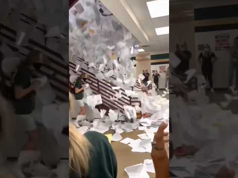 School throwing papers... Janitor having to clean up