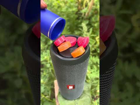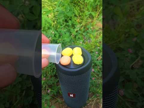 JBL Bass test with red and orange toffee chocolate jump JBL flip 2 speaker