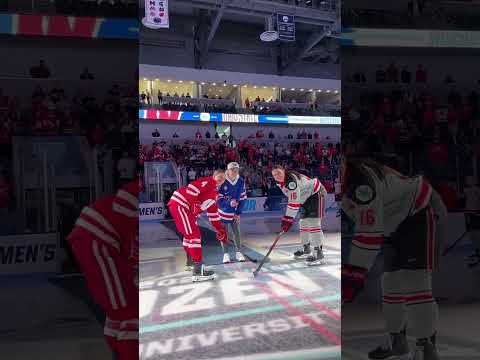PSU standout and Gold Medalist, T Janecke drops the ceremonial puck! #OlympiansMadeHere #WFrozenFour