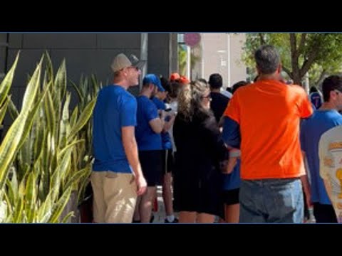 Florida Gators fans wait to see last year's national champs head to Sunday's game.