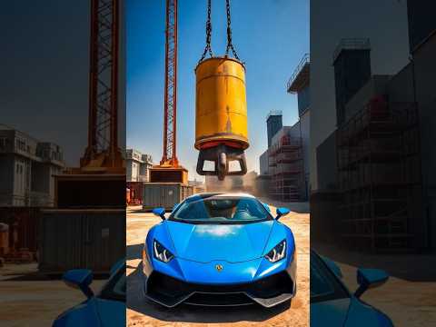 Blue Lamborghini Faces a Giant Crane Smash! | Epic Crane Drop Challenge with a Lambo! #lamborghini