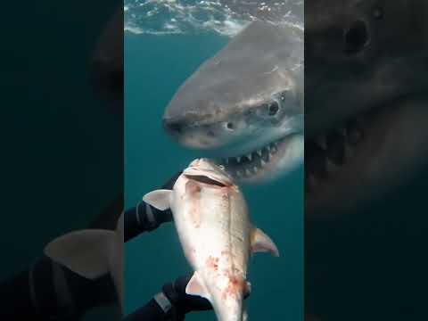 Un plongeur qui accorde du poisson 🐟 à un requin 🦈 marrin #fish #fishing #waterfall #requin