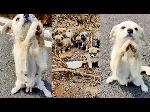 Mother Stray Dog Blocks Road, Begs For Food For Children In Cave