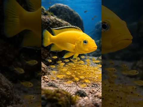 Electric Yellow Mom Protect Her Fry 🤩 #underwater #cichlids #electricyellow #fishing
