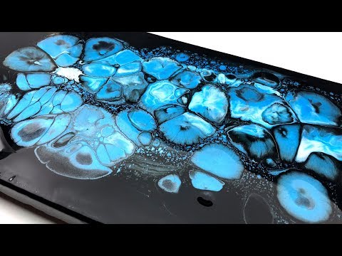 acrylic pouring - Center Swipe technique - black and blue