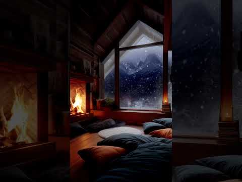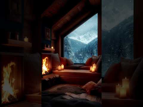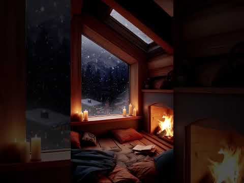 Snowy Cabin Escape – Calm & Cozy Fireplace Ambience #fireplace #snowfall #cozycabin #cozynights