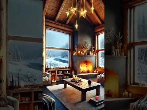 Calm & Cozy Cabin Escape – Snow and Fireplace Warmth #fireplace #snowfall #cozycabin #cozynights