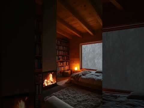 Calm & Cozy Winter Escape | Cabin Fireplace & Snowstorm #fireplace #snowfall #cozynights #cozyhome