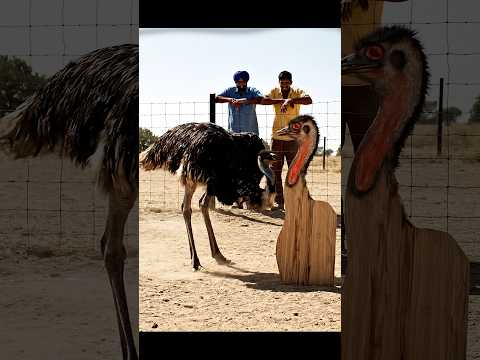 Ostrich Fights Fake Rival! 🦃 #shorts