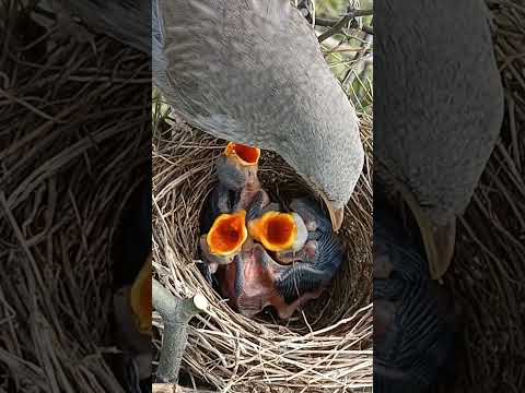 Wild babbler bird feeding her babies #shorts