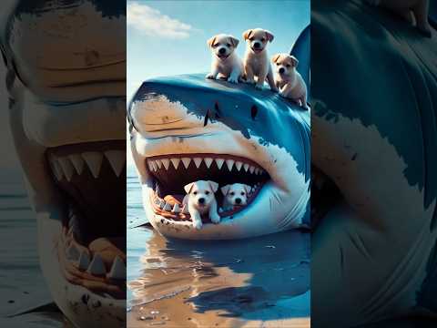 Cutest Shark Encounter Ever! 🦈🐶 Puppies Playing Inside a Giant Shark's Mouth #shorts #cute #ai