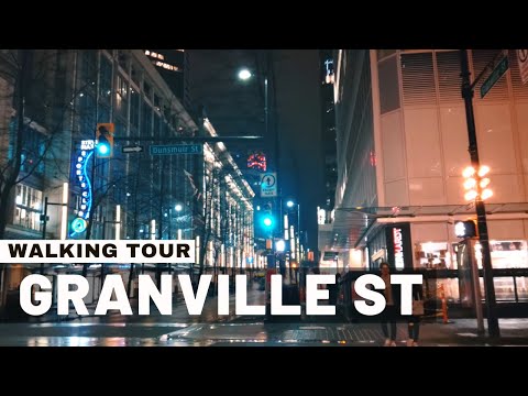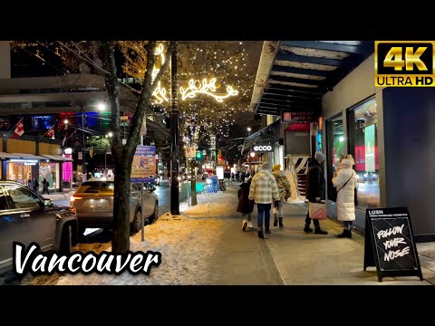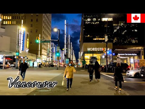 Vancouver NightLife Art Gallery UBC Robson Street Canada (4k) Walk