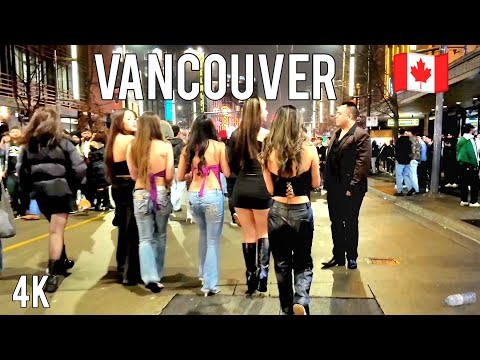 【4K】 Granville street Vancouver nightlife part.1 -Street Walking