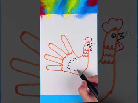 Draw and play | Draw your hand and create a super colorful rooster! 🐓🖐️