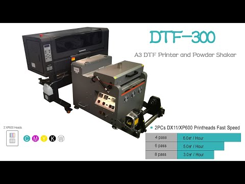 30cm min dtf printer with powder shaker oven xp600 printhead CMKY+white pet film printing
