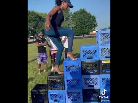 Only woman to beat the TikTok Crate Challenge in heels 👠without falling