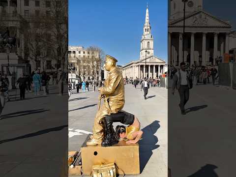 How London Levitating Goldman Statue works hard to entertain people.#livingstatue #floating #art