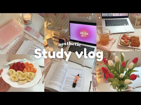 📔STUDY VLOG 🌷productive night, yummy food, grocery shopping, new tulips, notes…🎀✨