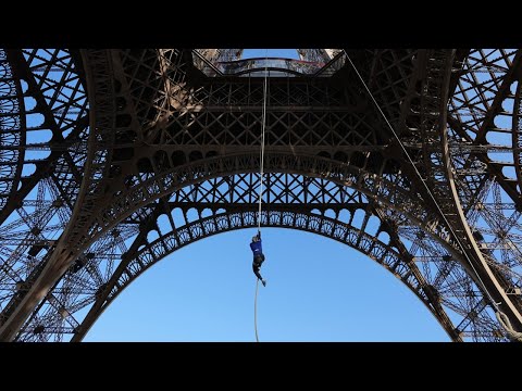 French athlete aims to break rope climbing record at Eiffel Tower