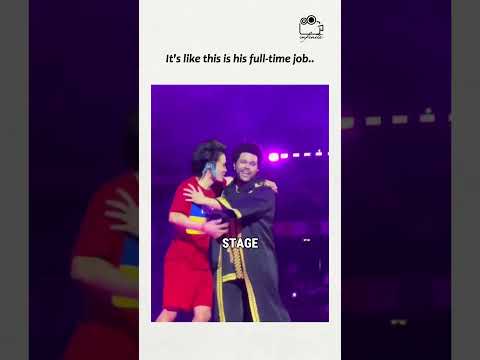 A fan jumps on stage while the weeknd performance #touring #theweekndfans #stageperformance