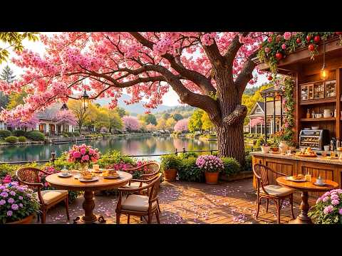 Morning Spring Jazz 🌸 Gentle Jazz Music at Cozy Outdoor Coffee Shop Ambience for Mood Booster, Study