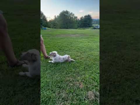 10 week old Australian Shepherd puppy practicing obedience commands.
