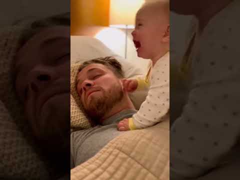 Baby hilariously bewildered by dad's thunderous snore