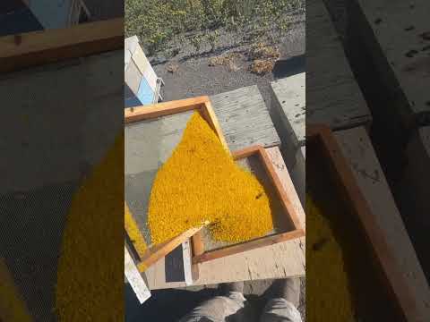 Collecting bee pollen from the traps it’s looking like gold. #bees #beekeeper #pollen #savethebees