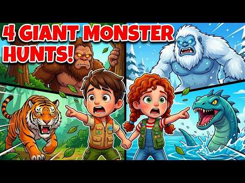 We're Going on 4 GIANT MONSTER HUNTS! 🦍 Bigfoot + Yeti + Tiger + Lake Monster Hunt For Kids