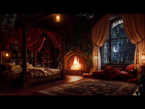 Stormy Sound Therapy - Relaxing Rain, Thunder and Fireplace Sounds in this Castle Room | 12 Hours