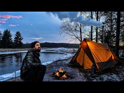 Solo Winter Survival near Mississippi Headwaters! Hot Tent & Steak Dinner