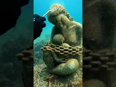 Diver Cleans a Mysterious Statue Underwater 😳 #horror #oceanmystery #youtubeshorts #viralvideo