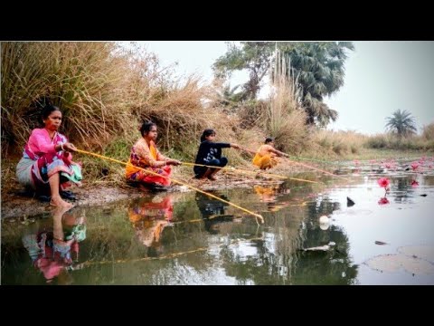 Fishing video || traditional ladys catching hook fishing in village Lotus pond #fishing