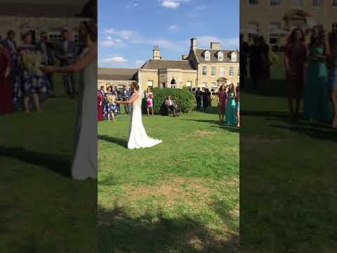 Woman catches the bride's bouquet, and her boyfriend takes off running!