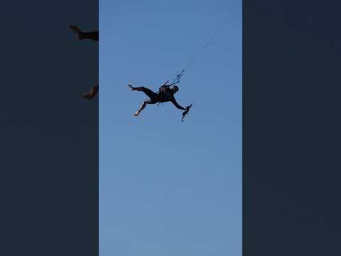 Crazy kitesurfer jumps 60 feet high over a windsurfer! #kiteboarding #kitesurf #kitefoil #windsurfer