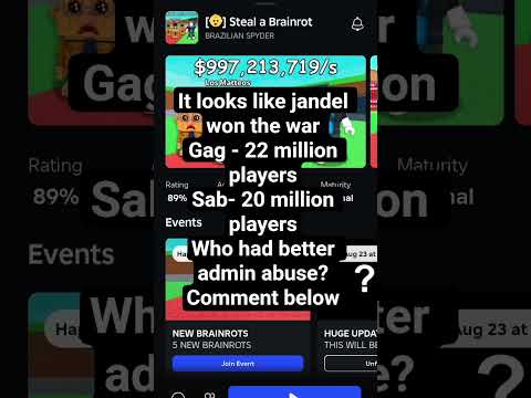 SAMMY OR JANDEL? WHO WON THE ADMIN ABUSE WAR? #growagarden #stealabrainrot #roblox #shorts #gag #sab