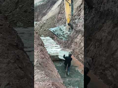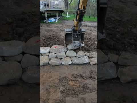 Use excavator to help build stone wall #construction machinery equipment