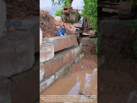 Stone Symphony: Watch This Excavator Operator Build a Perfect Rock Wall Like LEGO!