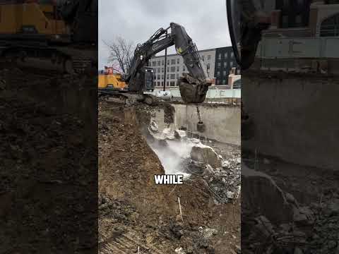 Excavator Using a Massive Steel Ball to Break Reinforced Concrete in One Strike